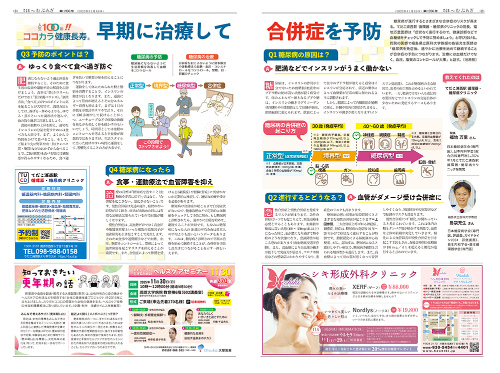 | 01-03P | [人生100年!!ココカラ健康長寿]放っておくと怖い糖尿病 合併症の発生、脳梗塞やがんの進行も 専門医に聞いた予防のポイント | |