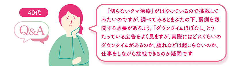 A 「切らないクマ治療」という言葉は魅力的ですが、実際の治療を受けるかどうかは慎重に考える必要があります。