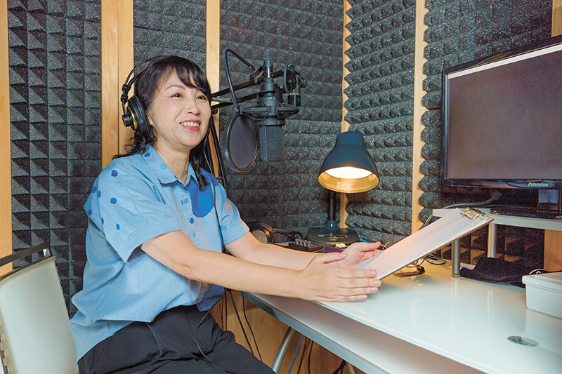 一方、ナレーションでは、CMや企業VP(ビデオパッケージ)などを手掛ける。少年からおばあちゃんまで、1人で5役を演じ分けられる、多彩な声色が強み。「人間だからこそできる細やかな感情表現を大事にしています」。