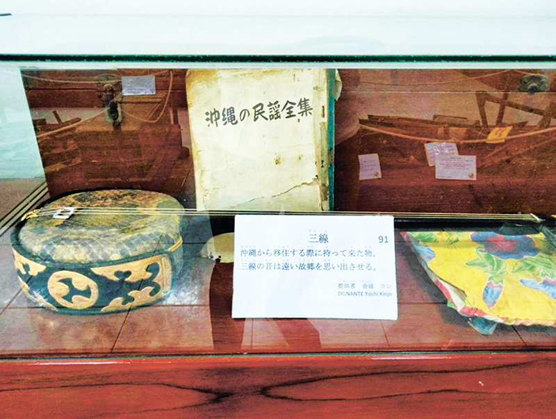 オキナワボリビア歴史資料館には、当時の三線や楽譜、クワなどが飾られ、オキナワ村の歴史を肌で感じられた