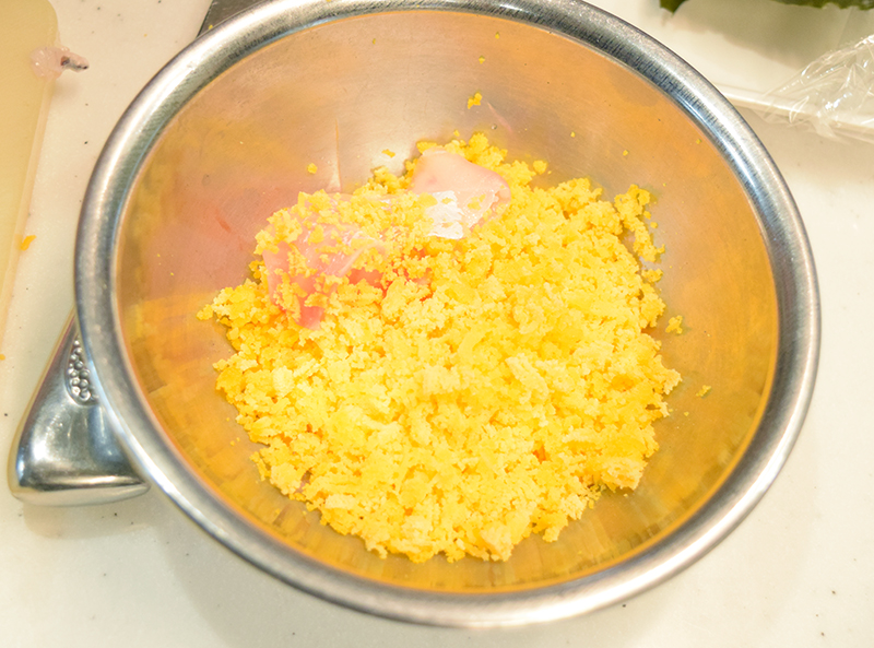 卵は固ゆでにして黄身だけを裏ごししておく=写真