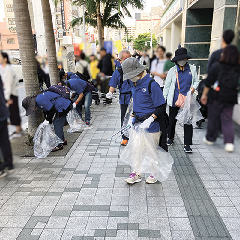 NAHAマラソン前にボランティアで歩道を清掃