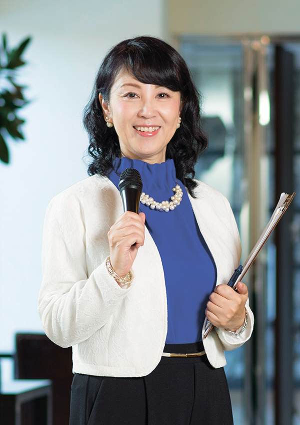 司会の仕事を再開し、16年にはFMラジオのパーソナリティーに抜てき。得意とするMICEの司会でも実績を重ねている。また、立ち居振る舞いと言葉遣いの美しさが目にとまり、ナレーション収録に立ち会った広告代理店担当者のすすめで、接遇マナー指導員の資格も取得。研修講師としても、県内外の企業のイメージアップをサポートする。