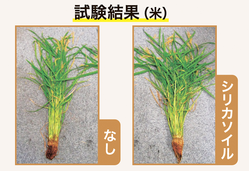 ケイ素は植物を丈夫にし、病害虫や高温・乾燥にも強くなります。オリオンビール株式会社、沖縄工業高等専門学校と共同で行った実験では、稲の収穫量が1.5倍、小麦は1.7倍に増えました。