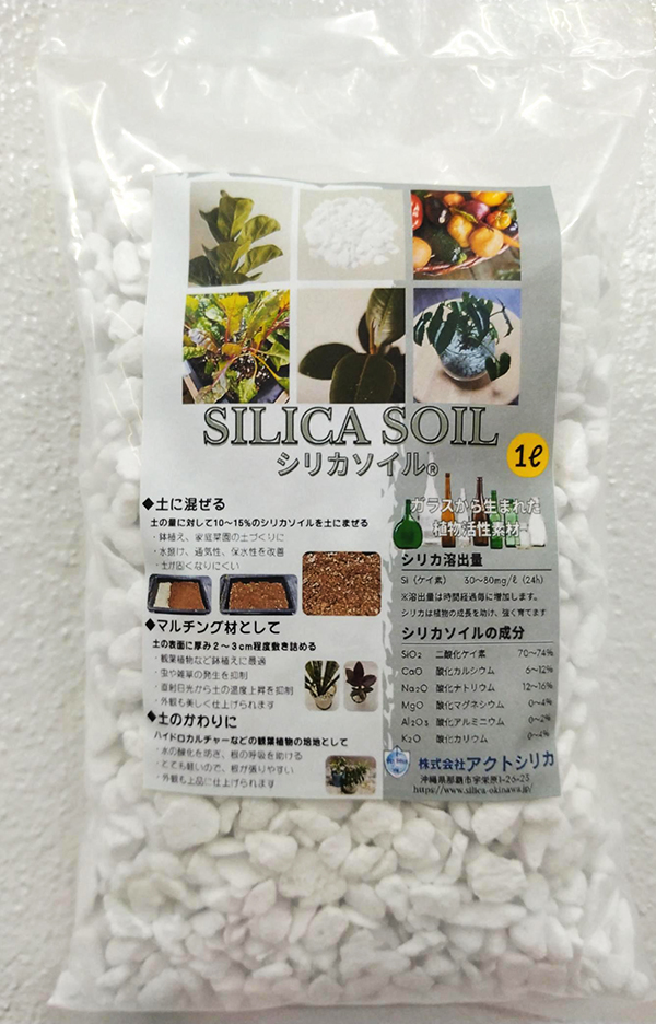 同社から、ほ~むぷらざの読者へ、特許技術で生まれた環境資材「シリカソイル」(1リットル入り)=写真=を先着20人にプレゼント! 応募は下記のアクトシリカ連絡先まで。商品は薬膳カフェ「ハービス八重瀬店」(八重瀬町字後原477)で受け取り。