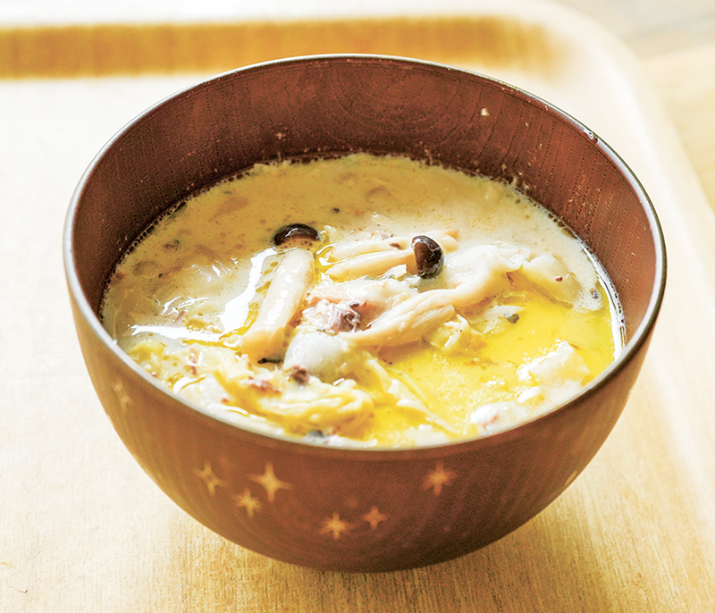 白菜とゆし豆腐の豆乳スープ