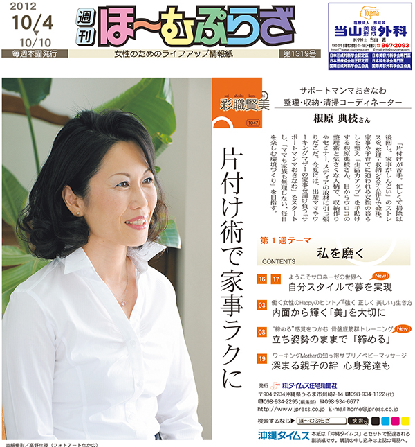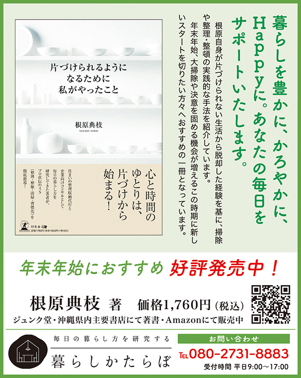 昨年、初めての著書「片付けられるようになるために私がやったこと」を出版。ことし10月から、毎週金曜日発行のタイムス住宅新聞で連載「人生の輪郭」を始めました。片付けの実践方法や、それによる人生の変化を多くの方に知っていただけるとうれしいです。